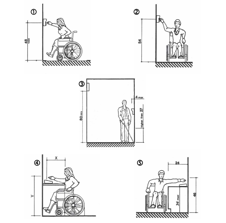 floor with no obstructions in locations where the wheelchair has sideways access. See Figure 2. - Keypads should not be mounted so as to protrude more than 4” from the wall. If mounted in a bollard or